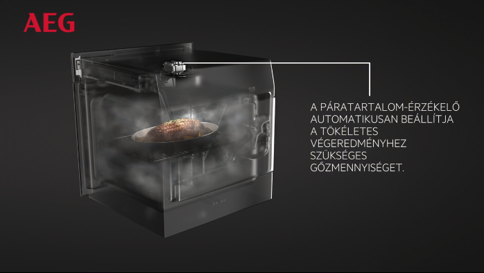 A sütőben alkalmazott nedvességérzékelő szenzor automatikusan beállítja a tökéletes végeredményhez szükséges gőzmennyiséget.
