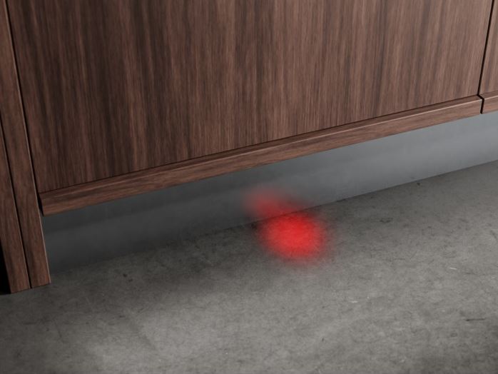 • Piros/zöld fénypont a padlón - a teljesen beépíthető mosogatógép okos megoldással tájékoztat a program pillanatnyi állapotáról. Mosogatás közben a padlóra vetített piros kijelzéssel közli a szükséges információkat. Miután minden ragyogóan tiszta, a kijelzés színe zöldre vált.