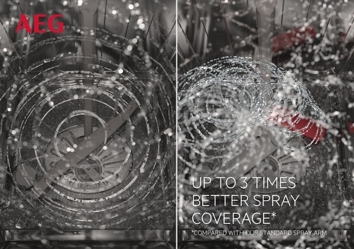 • SatelliteClean® rendszer - makulátlan mosogatási eredményt biztosít, mivel a szórókar a megszokotthoz képest háromszor akkora felülethez juttatja el a vizet. Mivel a duplán forgó kar folyamatosan változtatja a szórás szögét, a víz minden zugot elér.