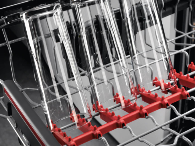 • Különleges védelmet és maximális tisztaságot nyújt az üvegpoharaknak az AEG GlassCare rendszere. A speciális felső fiók kíméletesen, de stabilan és a megfelelő helyzetben tartja az edényeket. Megakadályozza a rázkódást és elhárítja a törés veszélyét.