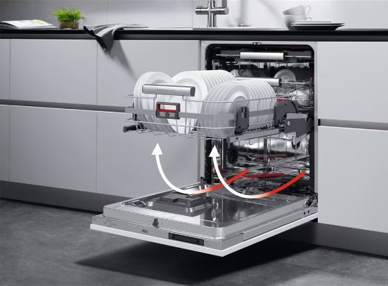 A ComfortLift mosogatógép alsó kosarát egy lift emeli fel, így az edények be- vagy kipakolásánál nem kell lehajolni.