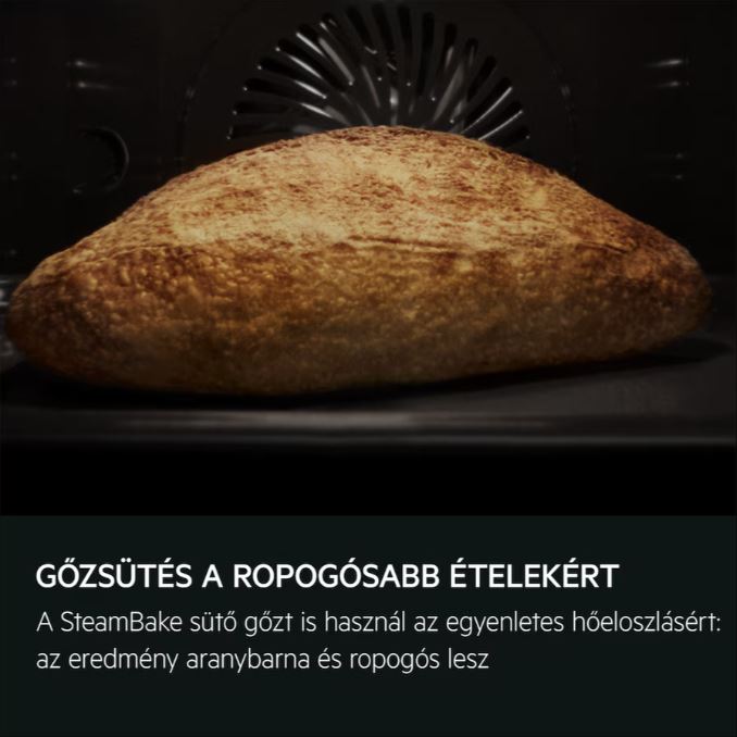 A SteamBake gőzfunkcióval rendelkező SurroundCook® 5000 sütő egy olyan többfunkciós készülék, amely a tökéletes sütés érdekében gőzt használ – így az étel kívül aranybarna és ropogós, belül pedig omlós és szaftos marad. Minden egyes étel egyenletesen sül át anélkül, hogy a tepsit meg kellene forgatni vagy el kellene mozdítani.