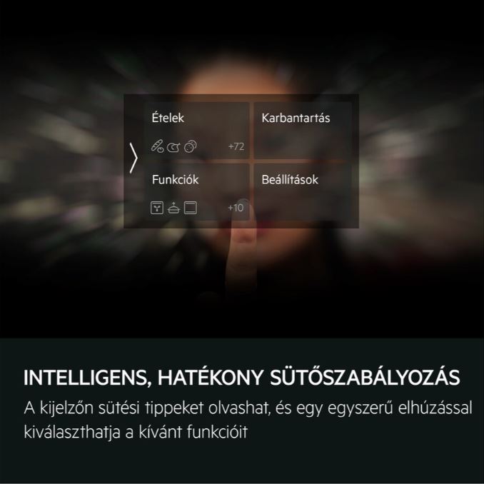 A CookSmart Touch érintőkijelzőn a lapozásos navigációval főzési javaslatok kaphatók, kiválaszthatók a sütőfunkciók, az energiatakarékos tippek segítségével pedig hatékonyabb a főzés. Kedvenc ételek és módszerek elmenthetők az alkalmazásban és egy gombnyomással elküldhetők a sütőnek.