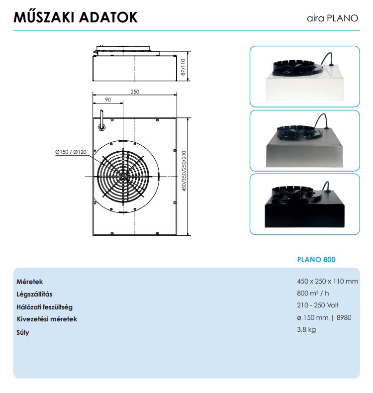Aira Plano 800/210 R Plazma szűrő páraelszívókhoz