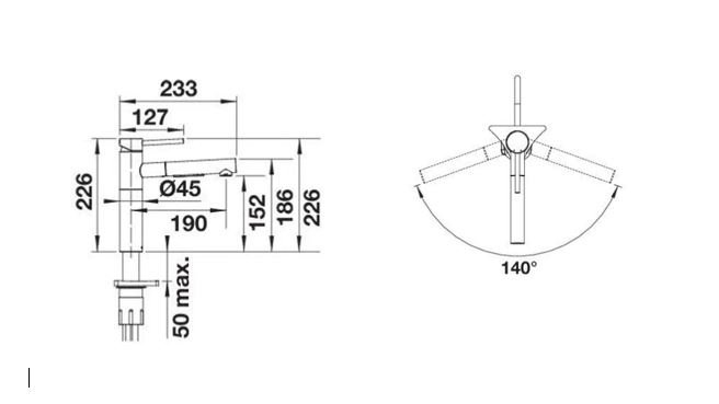 • 140 fokban elforgatható kifolyó