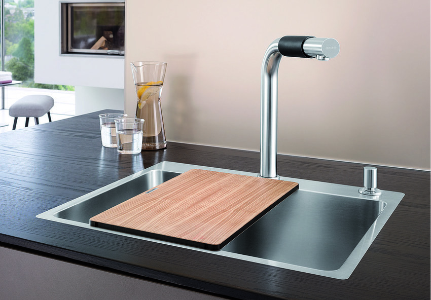 A tetszetős mosogatótálcához a konyhai munka kényelméért válasszon hozzáillő, egymással tökéletesen összehangolt csaptelepet, átüthető csaphely furatba illeszthető mosogatószer-adagolót, illetve a rendkívül ötletes hulladéktároló rendszer valamelyikét.