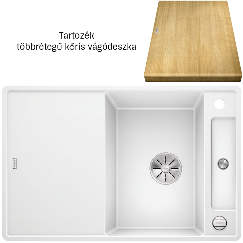 Blanco Axia III 45 S-F fehér 523196 Silgranit mosogatótálca fa vágódeszkával
