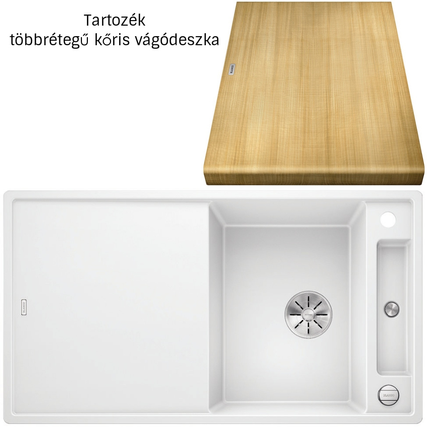 Blanco Axia III 5S fehér 523209 Silgranit mosogatótálca fa vágódeszkával