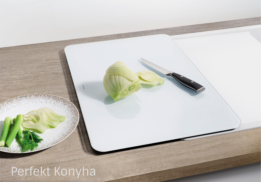 - teljes egészében eltolható vágódeszka az előkészítéshez a főmedencén, tálon vagy a kiöntőn - közvetlen aprítás a főzőedényekbe és tálakba
