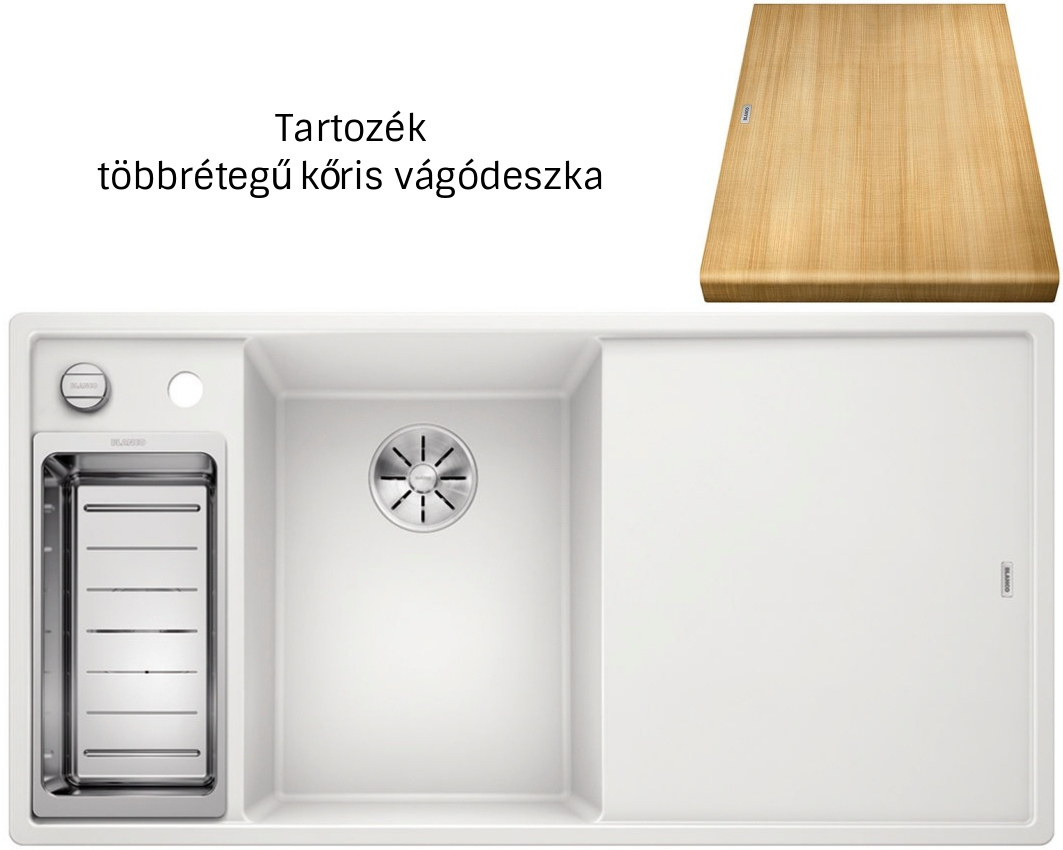 Blanco Axia III 6S fehér 524647 balos Silgranit mosogatótálca fa vágódeszkával