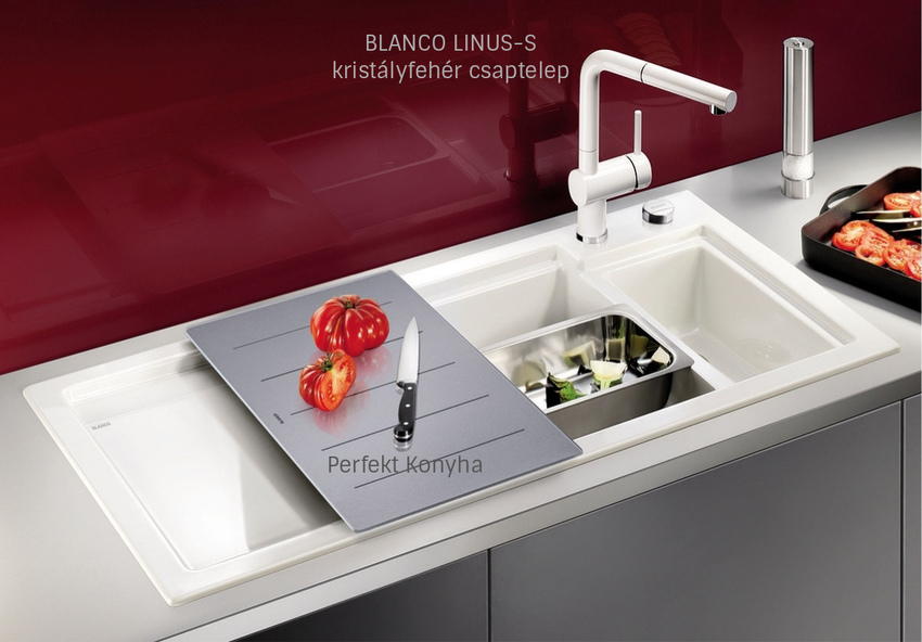 A tetszetős mosogatótálcához a konyhai munka kényelméért válasszon hozzáillő, egymással tökéletesen összehangolt csaptelepet, átüthető csaphely furatba illeszthető mosogatószer-adagolót, illetve a rendkívül ötletes hulladéktároló rendszer valamelyikét.