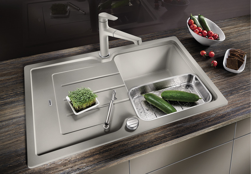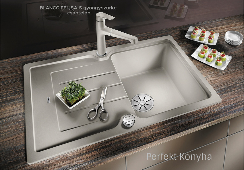 A tetszetős mosogatótálcához a konyhai munka kényelméért válasszon hozzáillő, egymással tökéletesen összehangolt csaptelepet, átüthető csaphely furatba illeszthető mosogatószer-adagolót, illetve a rendkívül ötletes hulladéktároló rendszer valamelyikét.