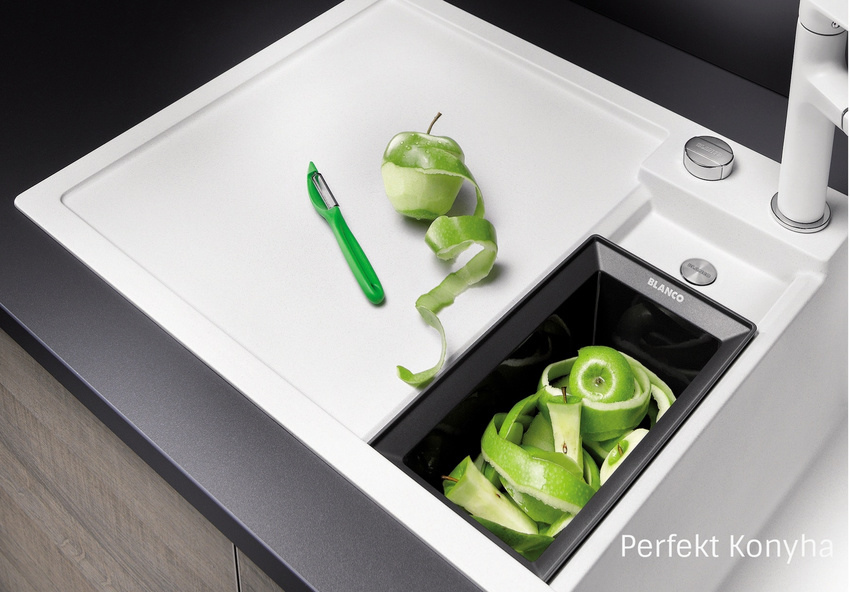 - integrált tároló tál maradékgyűjtéshez: tökéletesen kombinálható a BLANCO SELECT és BLANCO FLEXON II hulladéktárolókkal