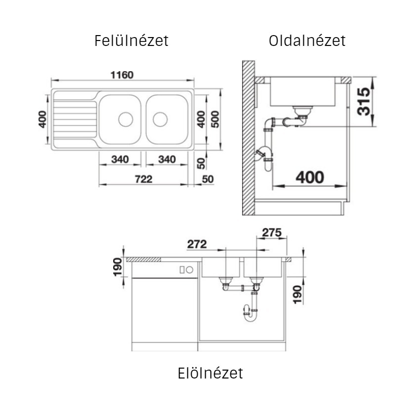 Külső mérete: 1160x500 mm