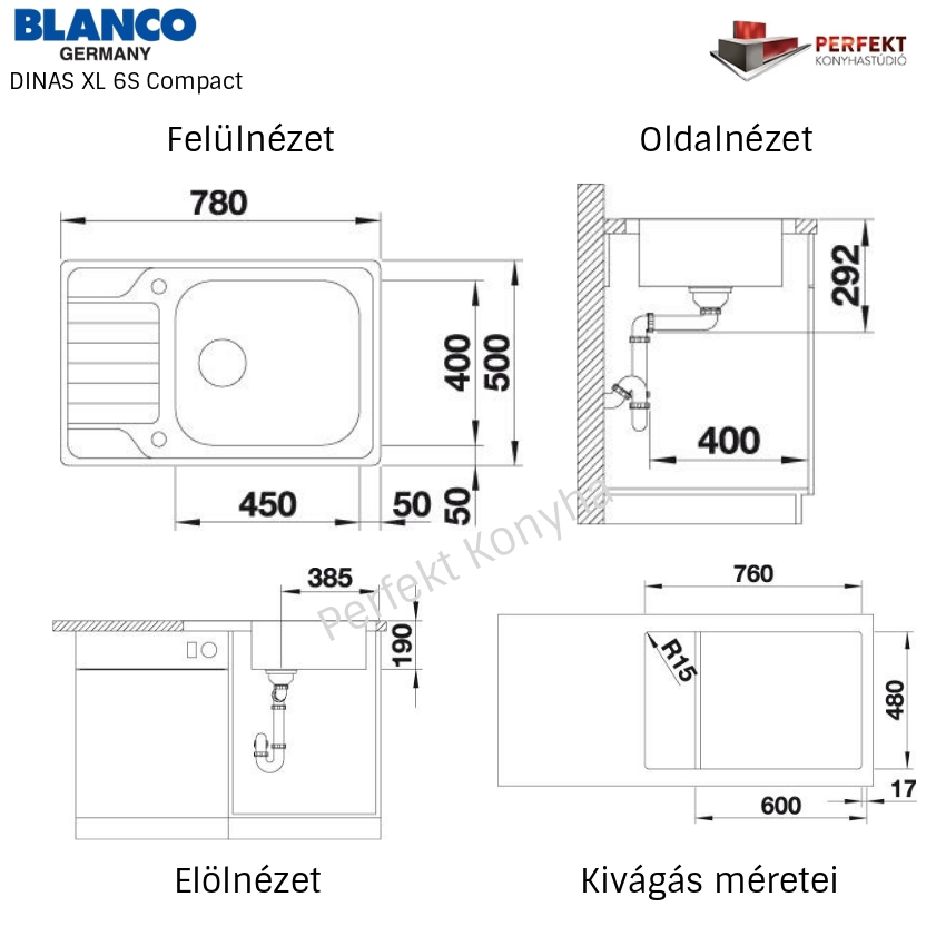 Blanco Dinas XL 6S Compact rozsdamentes mosogatótálca 5 év gyártói garanciával