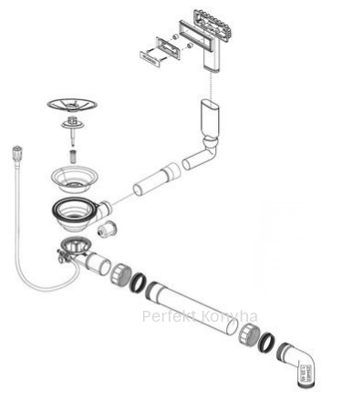 - Bűzzáró szifon 1 1/2" helytakarékos (a helytakarékos csőszifon használatával a mosogatómedence alatti rész jobban kihasználható, így például egy szelektív hulladékgyűjtő könnyedén elhelyezhető) – elérhető a 137287 cikkszámon