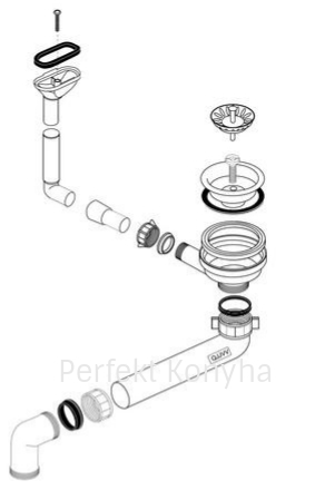 - Bűzzáró szifon 1 1/2" helytakarékos (a helytakarékos csőszifon használatával a mosogatómedence alatti rész jobban kihasználható, így például egy szelektív hulladékgyűjtő könnyedén elhelyezhető) – elérhető a 137287 cikkszámon