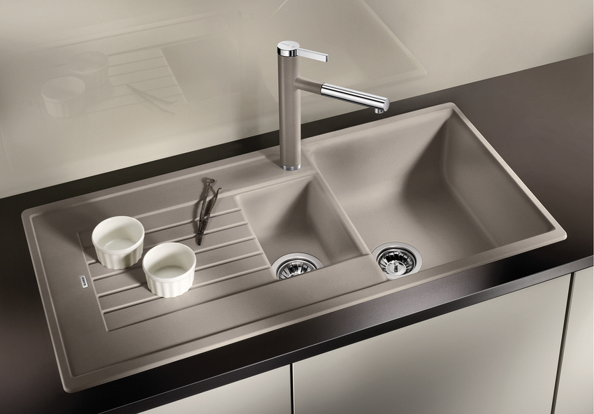 A mosogatók és csaptelepek színe tökéletesen megegyező. A csaptelepek kidolgozása optimálisan passzol minden BLANCO mosogatófelülethez.
