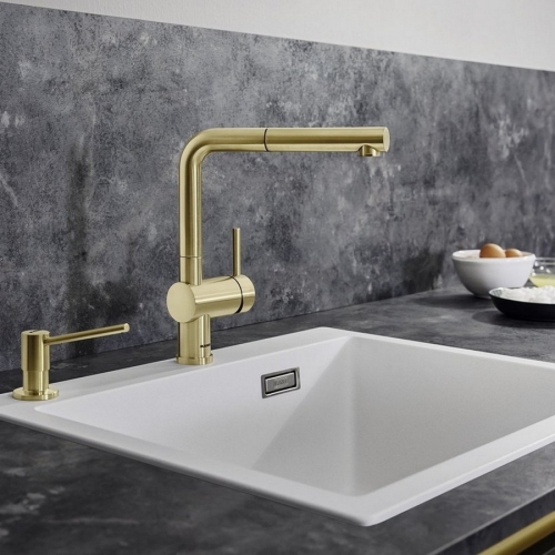Blanco Linus-S satin gold 526684 kihúzható fejes csaptelep