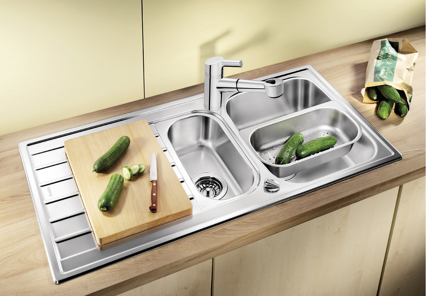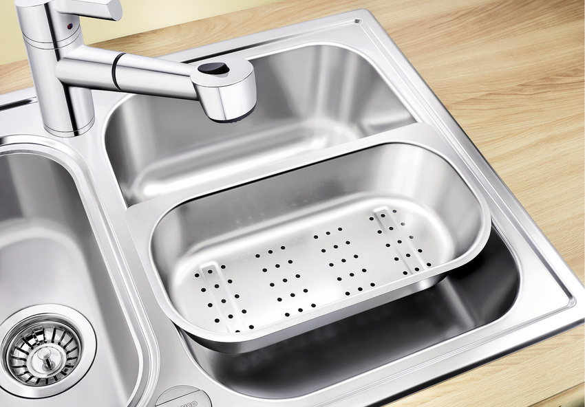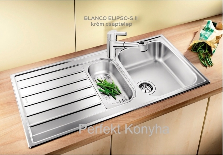 Blanco Livit 6S 514796 fényes rozsdamentes mosogatótálca + Blanco 221132 rozsdamentes gyümölcsmosó betét