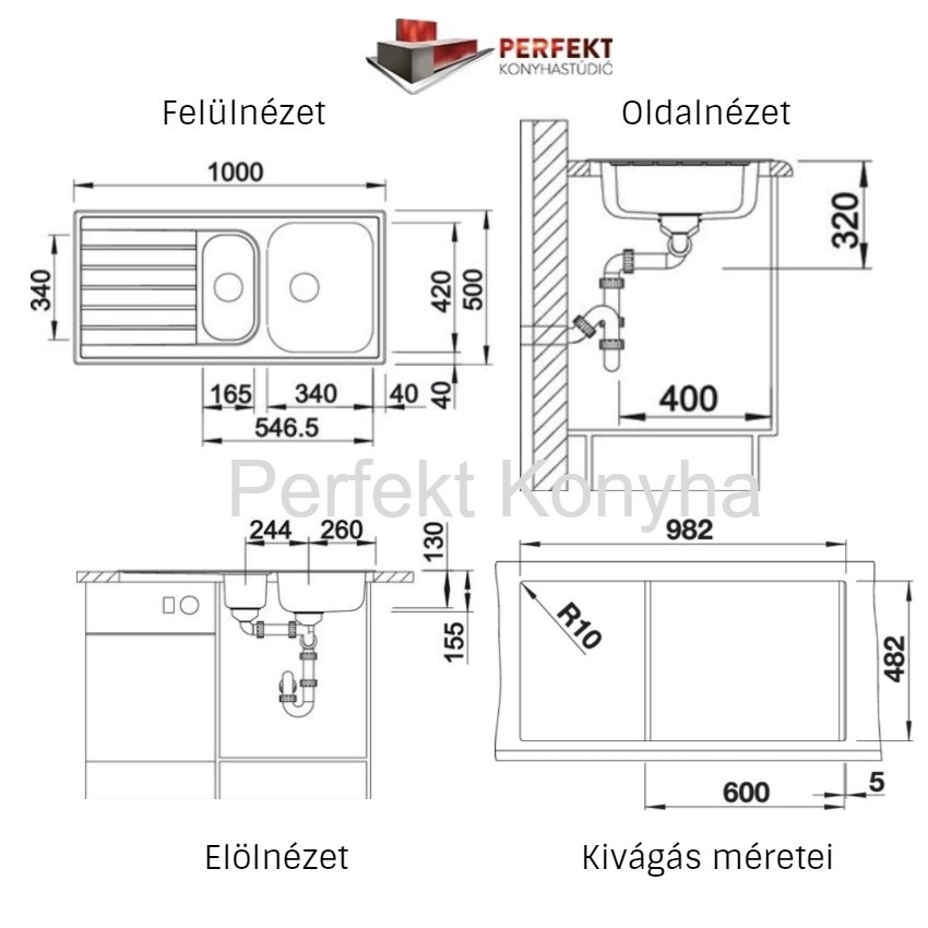 - Beépítése különösen gyors és egyszerű, hiszen a mosogatót egyszerűen csak az előre elkészített kivágásba kell felülről behelyezni, majd rögzíteni.