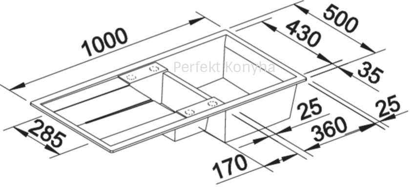 Külső mérete: 1000x500 mm