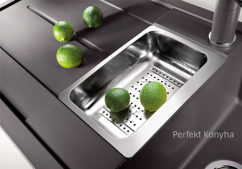 - a kiegészítő medence a rozsdamentes gyümölcsmosó tállal nagyon kényelmessé teszi a munkát