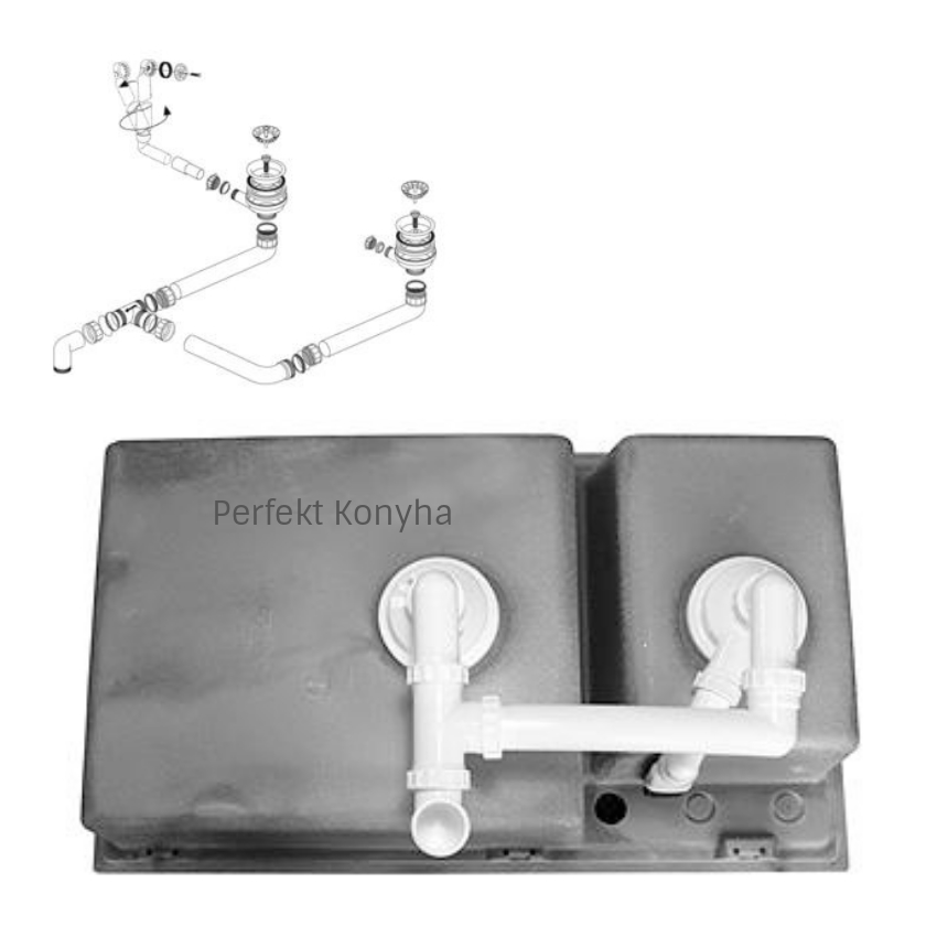 - Bűzzáró szifon 1 1/2" helytakarékos (a helytakarékos csőszifon használatával a mosogatómedence alatti rész jobban kihasználható, így például egy szelektív hulladékgyűjtő könnyedén elhelyezhető) – elérhető a 137287 cikkszámon