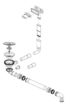 - lefolyó-garnitúra helytakarékos csővel (a bűzzáró szifon nem tartozék)
