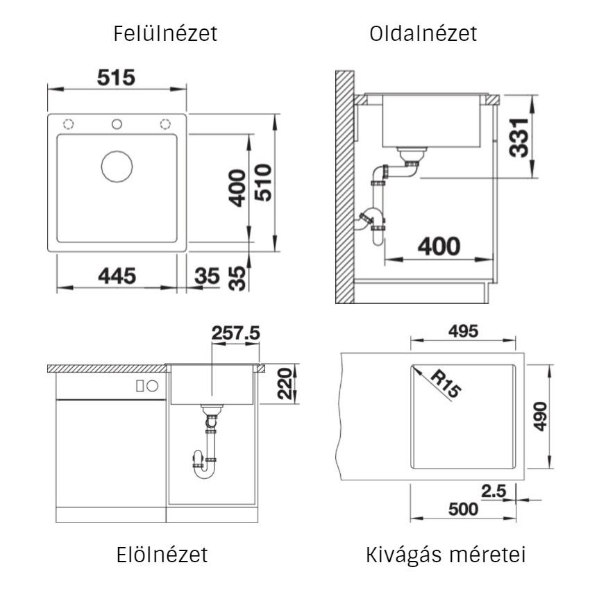 • Beépítése különösen gyors és egyszerű, hiszen a mosogatót egyszerűen csak az előre elkészített kivágásba kell felülről behelyezni, majd rögzíteni.