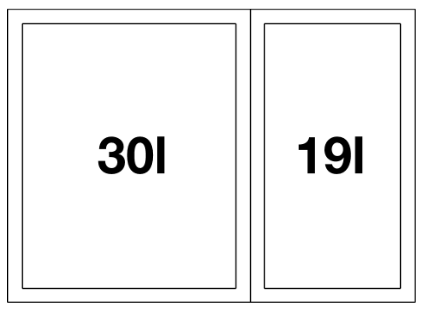 Űrtartalom: 49 liter (1 x 30 l-es és 1 x 19 l-es vödör)