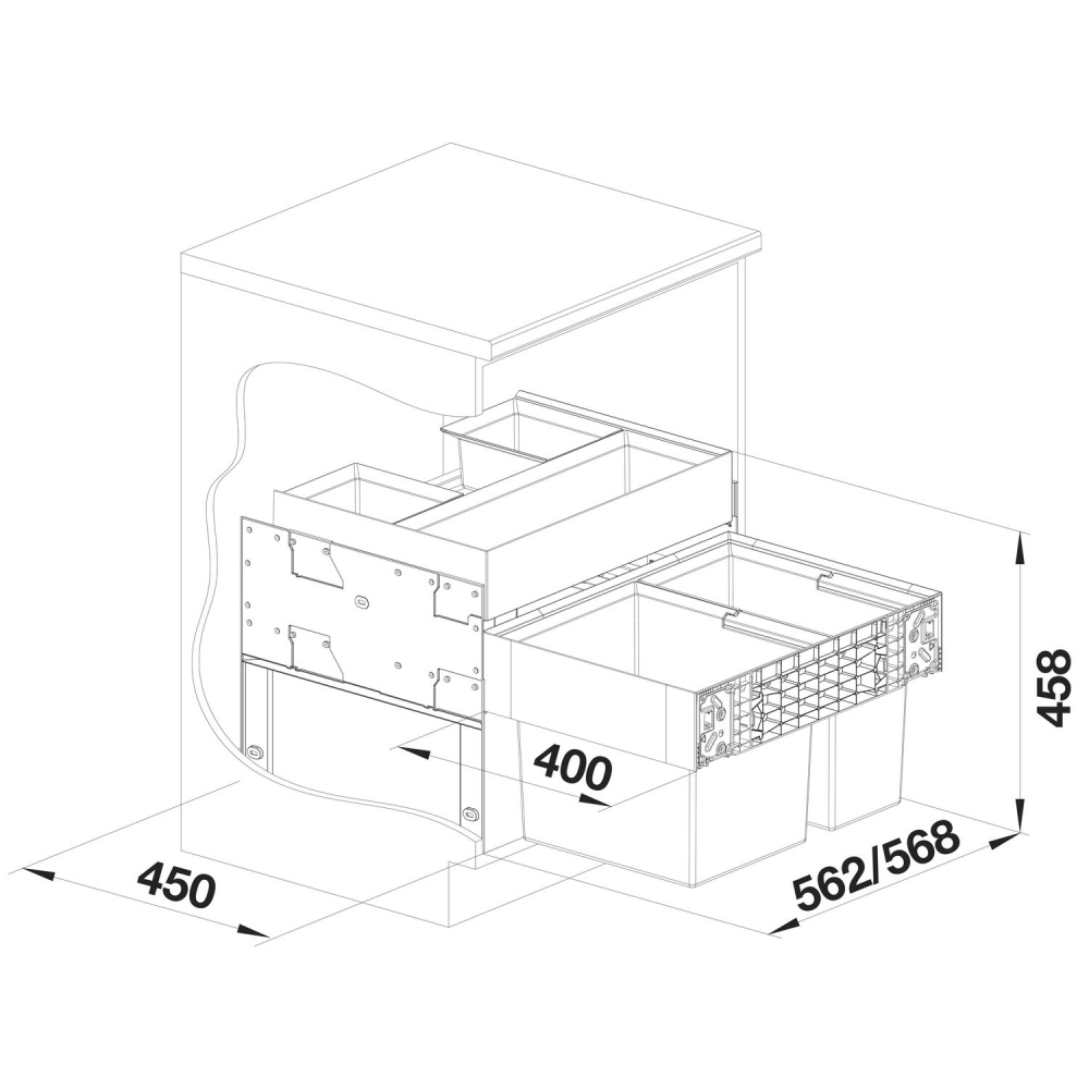 ·         a kiváló minőségű rendező fiókrendszer optikailag illik a szeméttárolóhoz