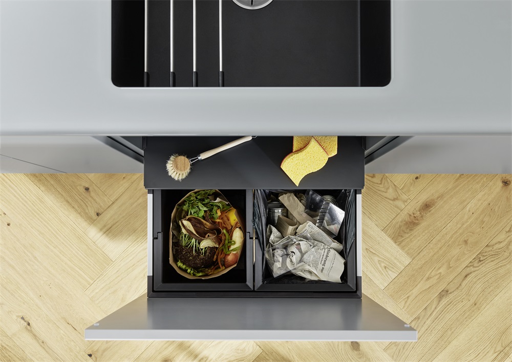 - A tervezésnél figyelni kell a hulladékgyűjtő rendszer beépítési magasságára, a mosogató beépítési mélységére és az alsószekrény ebből adódóan szükséges minimális méreteire.