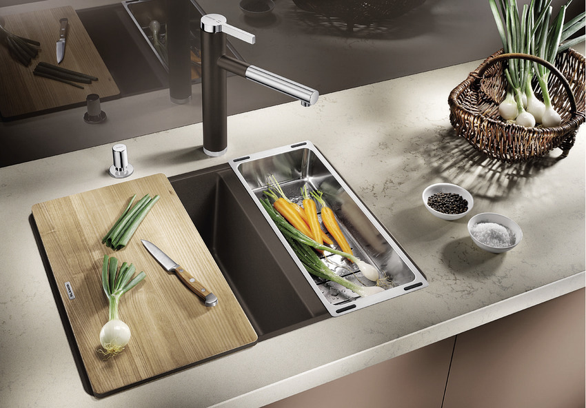 A divatos mosogatócsalád munkalapszintű beépítésre – a BLANCO SUBLINE 340/160-F – egyenes vonalú medenceforma a modern konyhatervezéshez