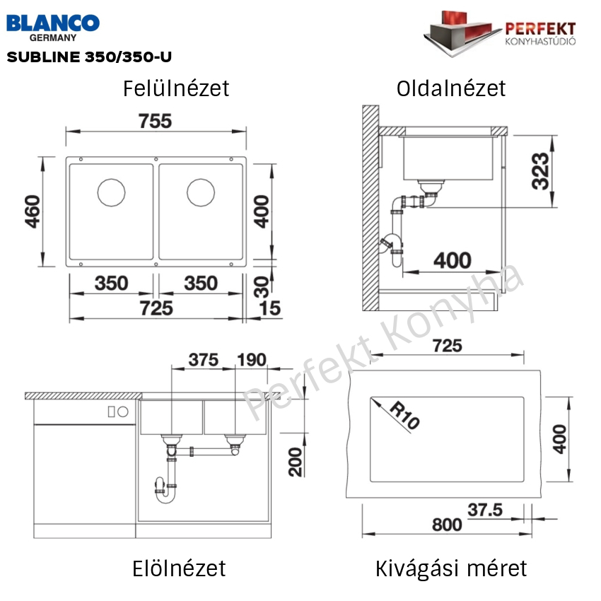 - 320-U – elérhető 320-F (munkalap szintjébe is építhető) - különféle SILGRANIT színben