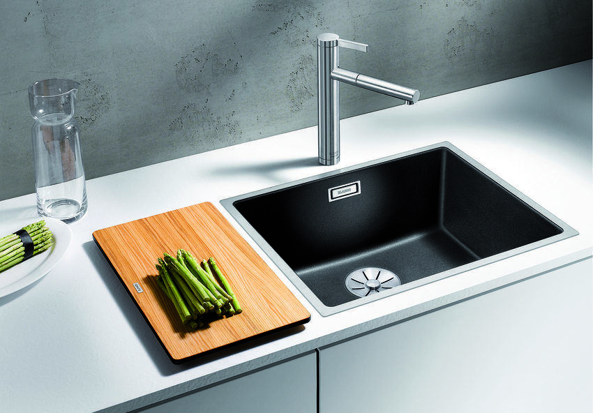 A divatos mosogatócsalád munkalapszintű beépítésre – a BLANCO SUBLINE 500-IF – elegáns rozsdamentes acél peremmel
