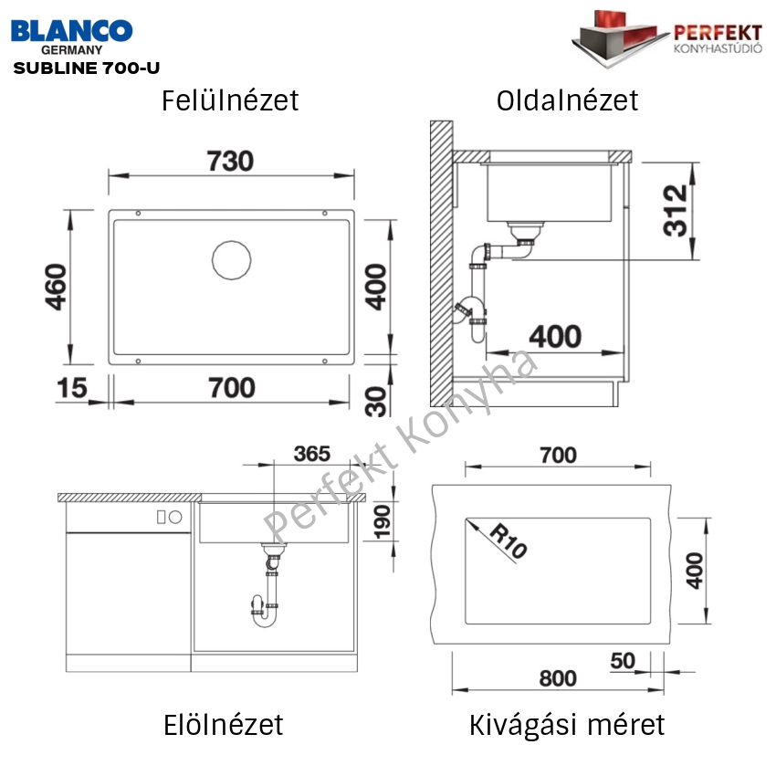 - 400-U – elérhető 400-F (munkalap szintjébe is építhető) - 6 SILGRANIT színben