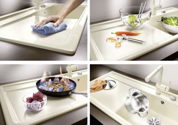 • ápolásuk egyszerű – a BLANCO kerámia felülete rendkívül kemény, sima és tökéletesen zárt. Ezek a tulajdonságok megakadályozzák a szennyeződések anyagba jutását, így elegendő a szennyeződések letörlése a felületről.