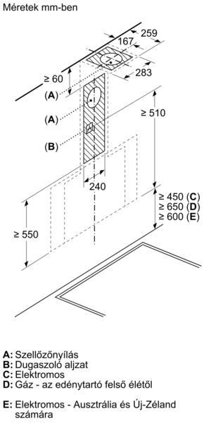 - Méretek, recirkulációs berendezés, kémény nélküli (HxSzxM): 471mmx790 mm