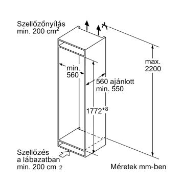 Integrált (teljesen beépíthető) fix ajtós/ollós zsanérral szerelt hűtő