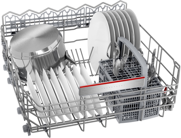 Kosárrendszer: Váltókar technika, Állítható felső kosár (Rackmatic), Lehajtható elemek az alsó kosárban (8db), Lehajtható elemek a felső kosárban (6db), Lehajtható pohártartó az alsó kosárban (2db), Lehajtható pohártartó a felső kosárban (2db), Talpas pohár tartórendszer az alsó kosárban, ExtraClean Zone, Kosármegállító ütközők, EasySlide Kerekek az alsó kosárban, EasySlide Kihúzórendszer a felső kosárban