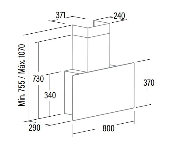 A páraelszívó elhelyezése a főzőfelülethez képest nem vízszintesen, hanem függőlegesen történik, ezáltal a főzőlap könnyen megközelíthető és kényelmesebben használható.