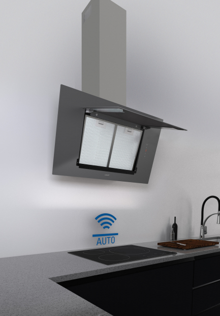 Automata (bluetooth) kapcsolat a megfelelő főzőlap között, ami szabályozza a páraelszívó teljesítményét a főzés intenzitásához képest.