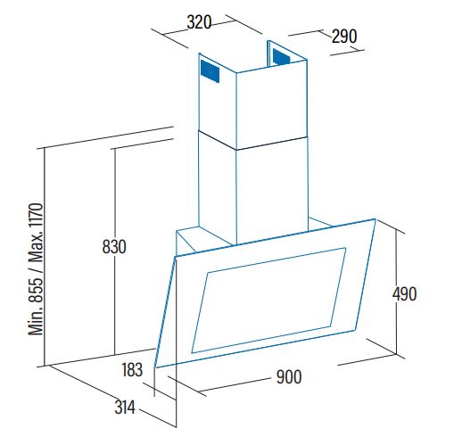 Vertikális (függőlegesen döntött) fali páraelszívó