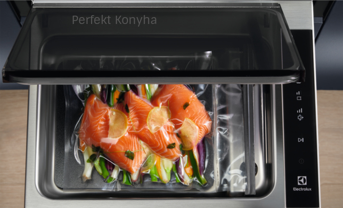 A legmodernebb éttermi konyhatechnológia otthon a vákuumozó fiókkal. A Sous Vide funkció használatával vákuumzárt tasakban, a fűszerekkel és ízesítőkkel együtt alacsony hőmérsékleten párolható az étel. Ez a módszer rendkívüli mértékben fokozza az ízeket, és páratlan puhaságot és textúrát garantál.