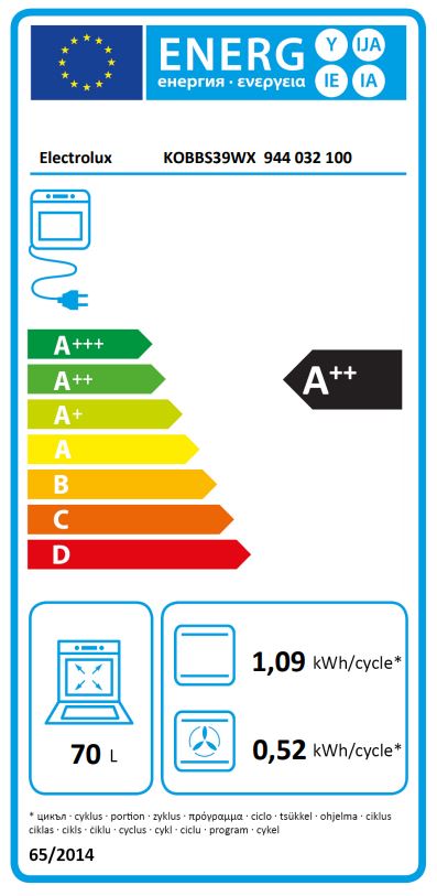 - Sütőfunkciók: alsó sütés, ventilátor + világítás, grill, grill + alsó sütés, grill + alsó sütés + légkeverés, hőlégbefúvás, hőlégbefúvás + alsó sütés, hőlégbefúvás, gőz + alsó sütés + ventilátor, gőz + ventilátor, gőz + hőlégbefúvás + alsó sütés