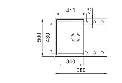 Medence méretei: 340 x 430 x 210 mm
