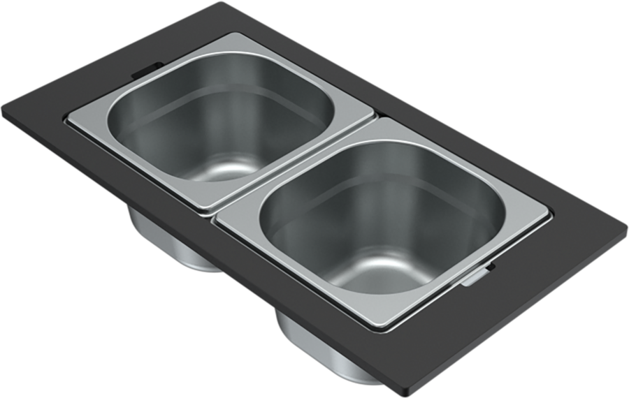 Kétrészes alumínium tároló edény inox színben, fekete HPL kerettel.