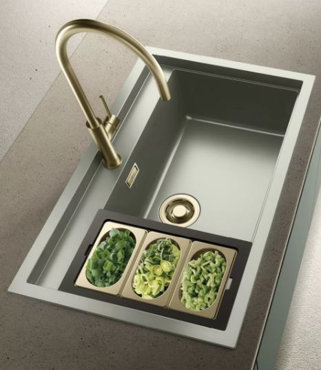 Elleci Sintesi 130 K82 Sage Green arany szűrőkosárral keratek plus mosogatótálca