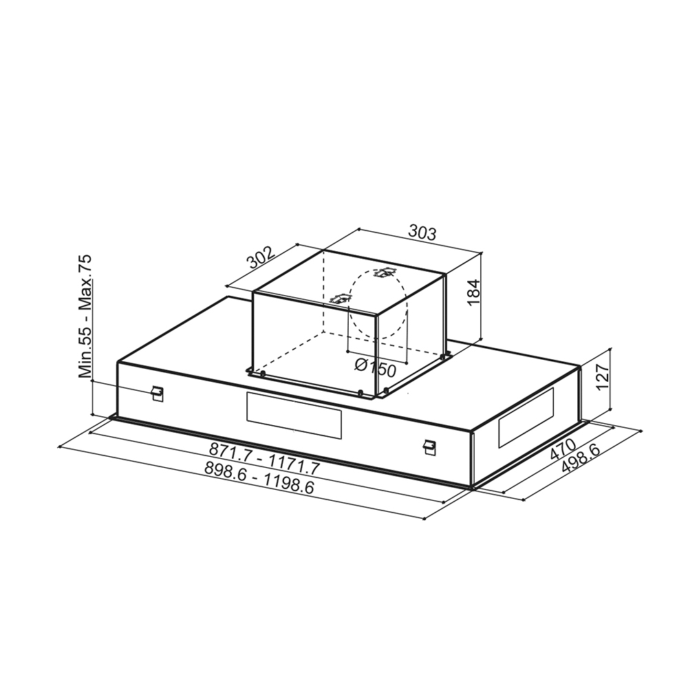 Elvezetés átmérője: 150/120 mm